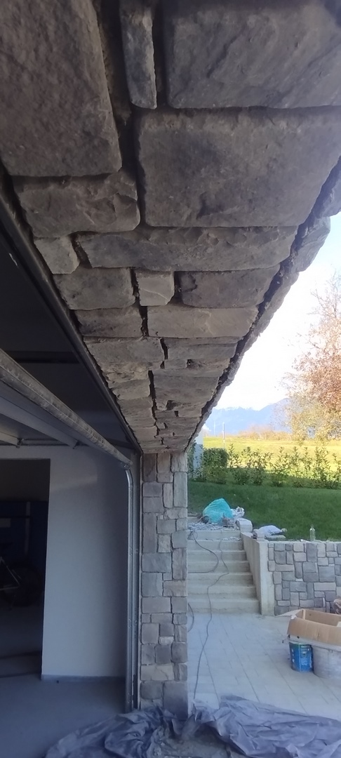 Kamen za oblaganje lahko položimo tudi na ostale poudarke na fasadi. Z njim se lahko obloži in s tem poudari vhod v hišo. Še posebej lepo pridejo do izraza stebri obloženi s kamnom. Oblačenje stebra v kamen sicer zahteva pravega mojstra.